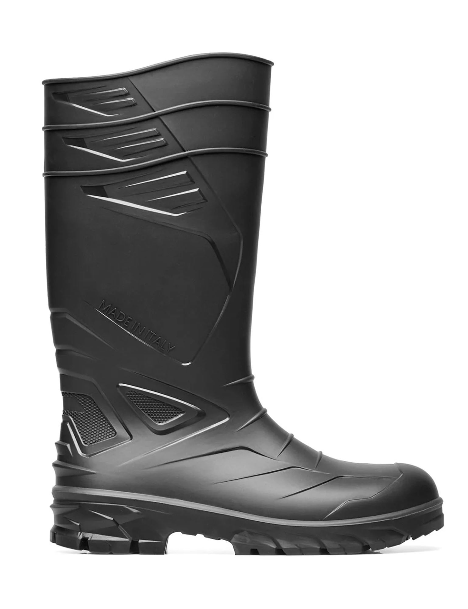 Άνω μέρος : 90% Πολυβινυλοχλωρίδιο (PVC) – 10% Καοτσούκ (NBR) Φόδρα : Eλαφριά πολυεστερική φόδρα Προστασία δακτύλων : Μεταλλικό κέλυφος με αντοχή σε κρούσεις 200J Προστασία πέλματος : Μεταλλικό αντιδιατρητικό ένθετο με αντοχή 1100N Πάτος : Ενσωματωμένος : Ενσωματωμένος Σόλα : 85% Πολυβινυλοχλωρίδιο (PVC) – 15% Καοτσούκ (NBR)