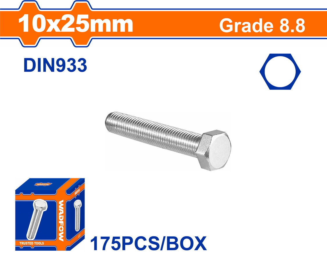 WADFOW ΒΙΔΑ ΕΞΑΓΩΝΗ ΓΑΛΒ. 8.8 DIN933 10X25 175TEM (WXSP535A)