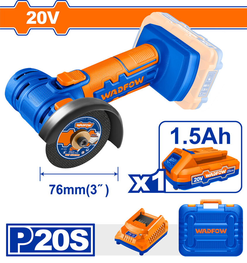 WADFOW MINI ΓΩΝΙΑΚΟΣ ΤΡΟΧΟΣ ΜΠΑΤ. Li-ion 20V / 1.5Ah / 1 ΜΠΑΤΑΡΙΑ (WLAP571)